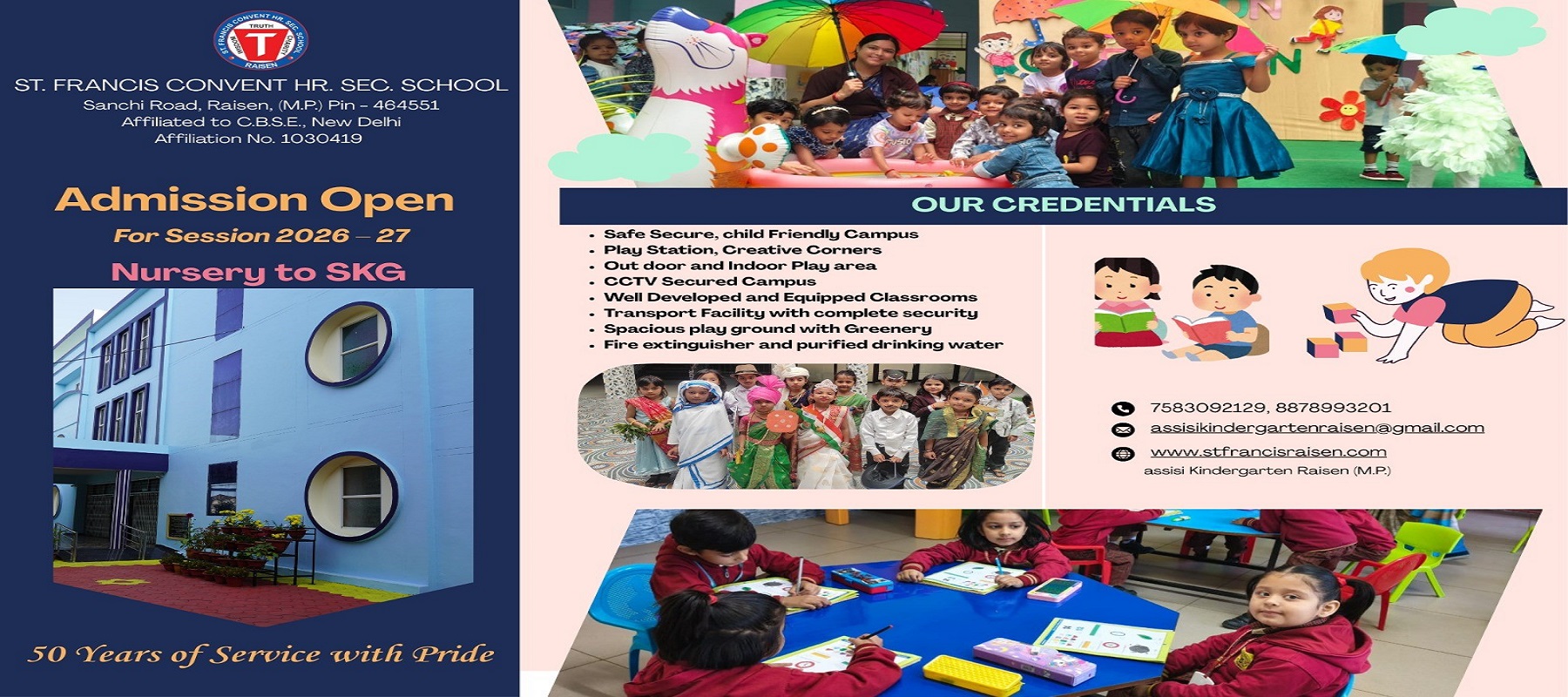 St. Francis Convent Hr. Sec. School, Raisen Under the management of the Society of the Sisters of St. Francis was founded in 1 july 1976. Our Society undertakes this prime service in order to create a just and human society where dignity of the human person is respected, religious harmony and national integration is upheld. We dedicate ourselves, our resources to the all round development of the...